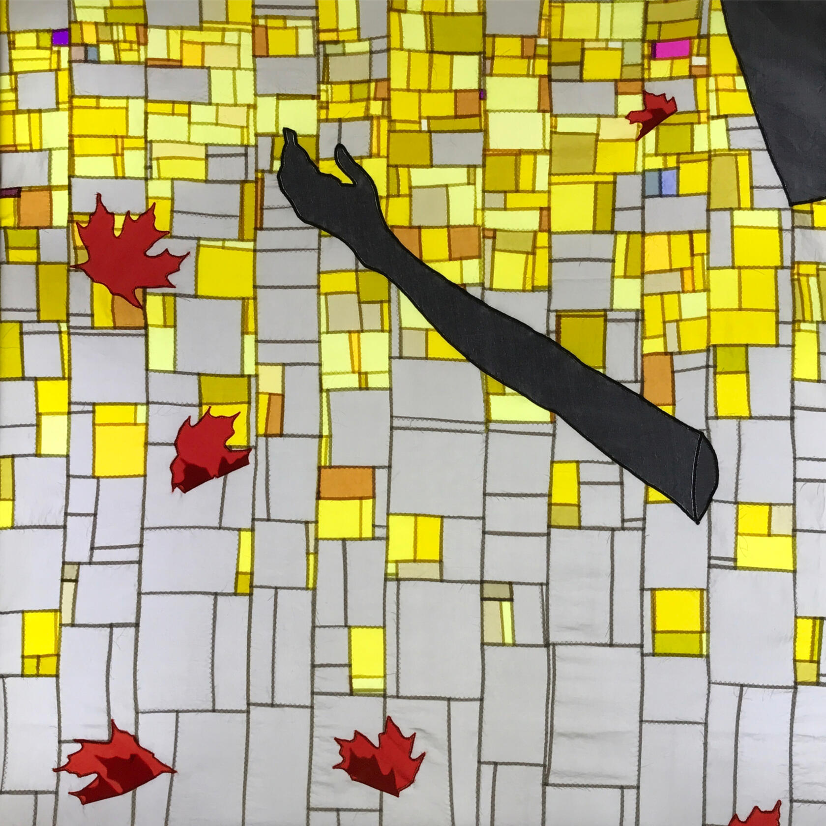 Textile art created from silk that is sliced and stitched in repetitive turns.